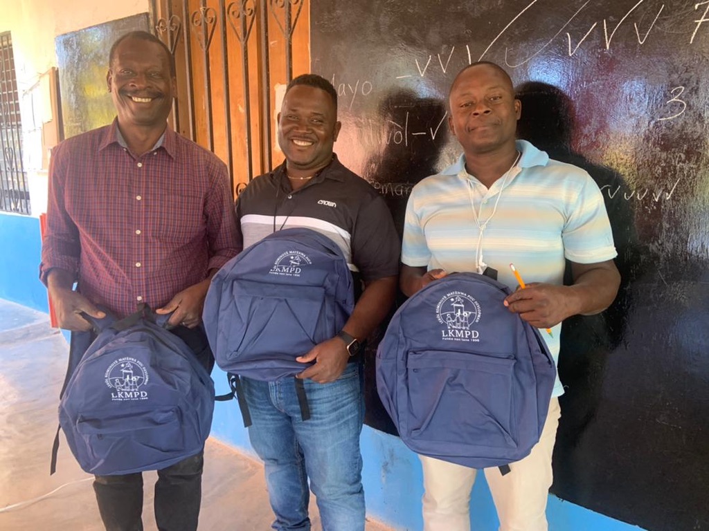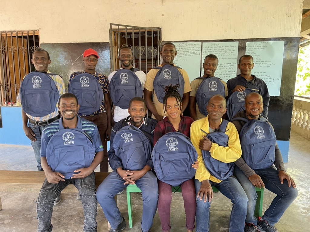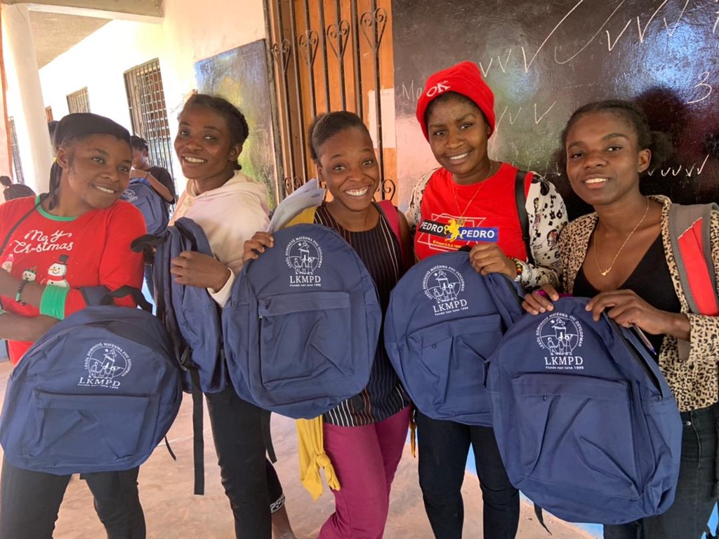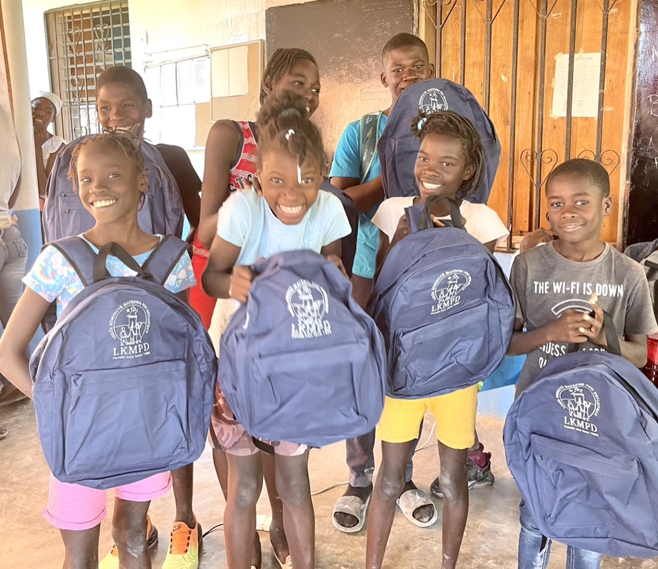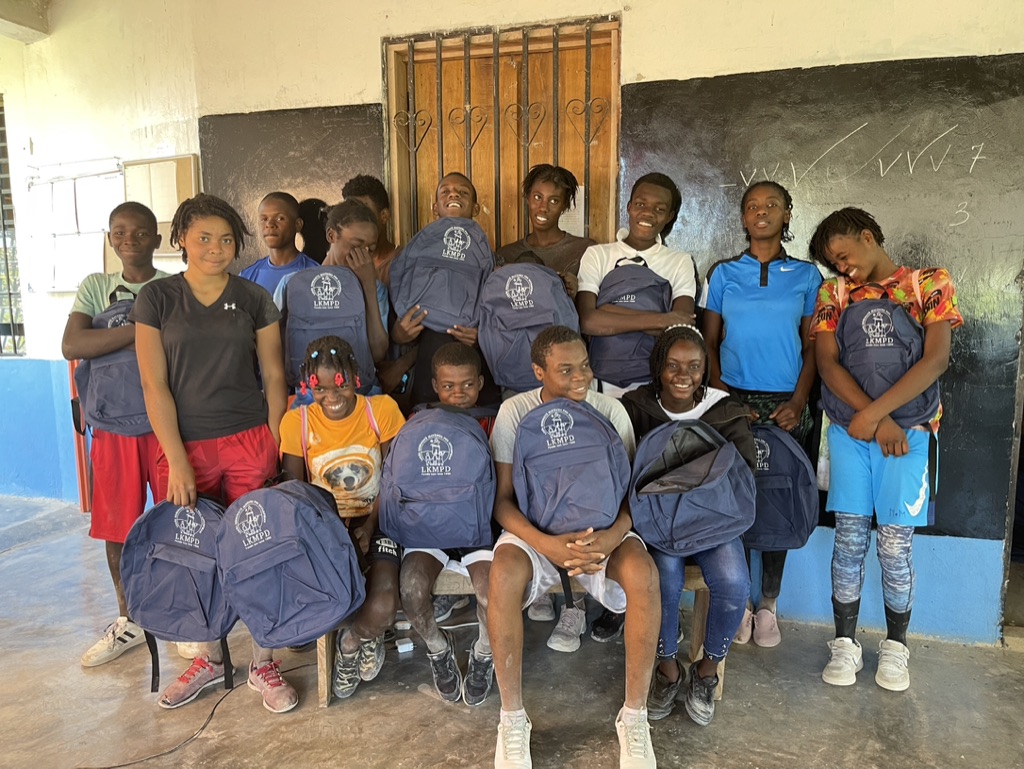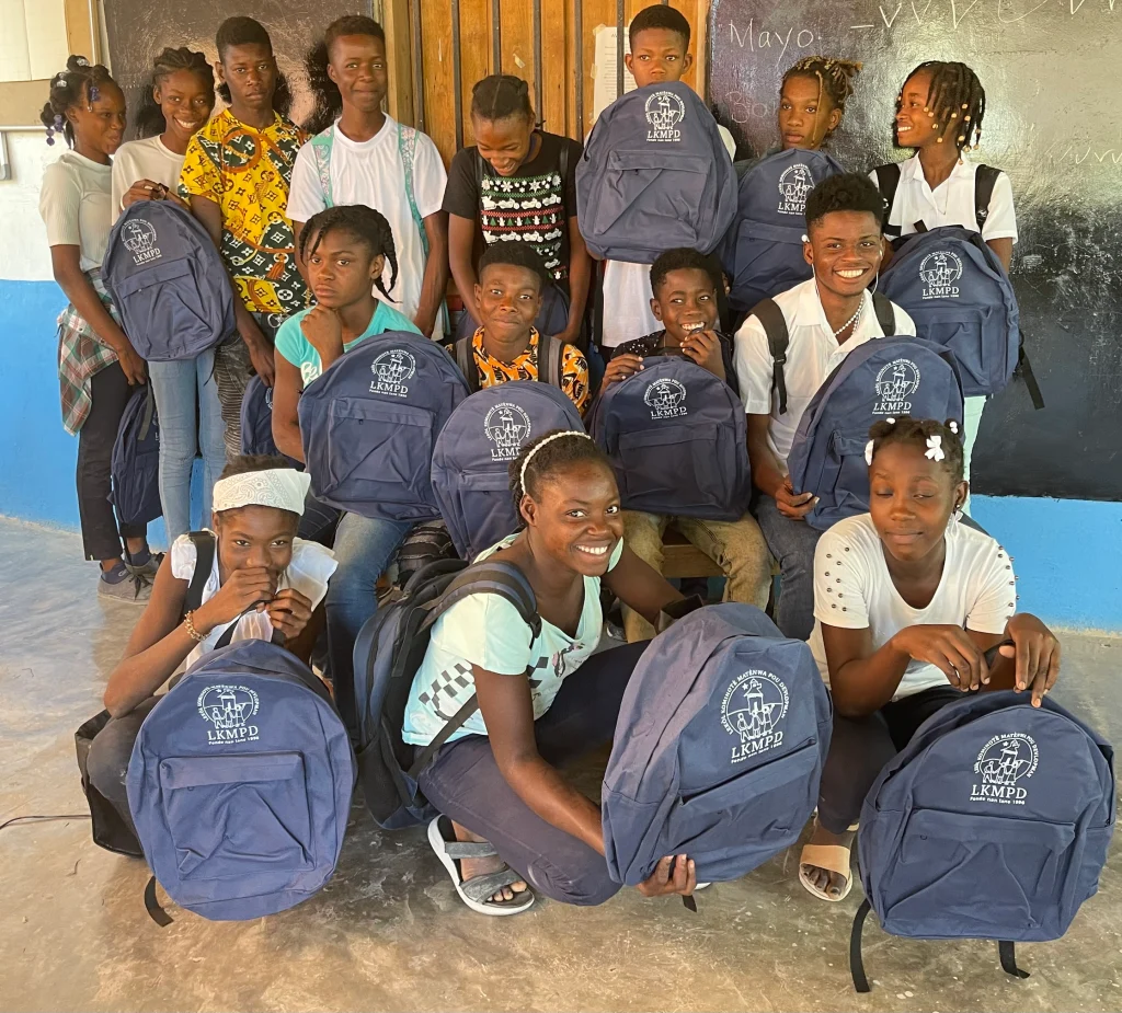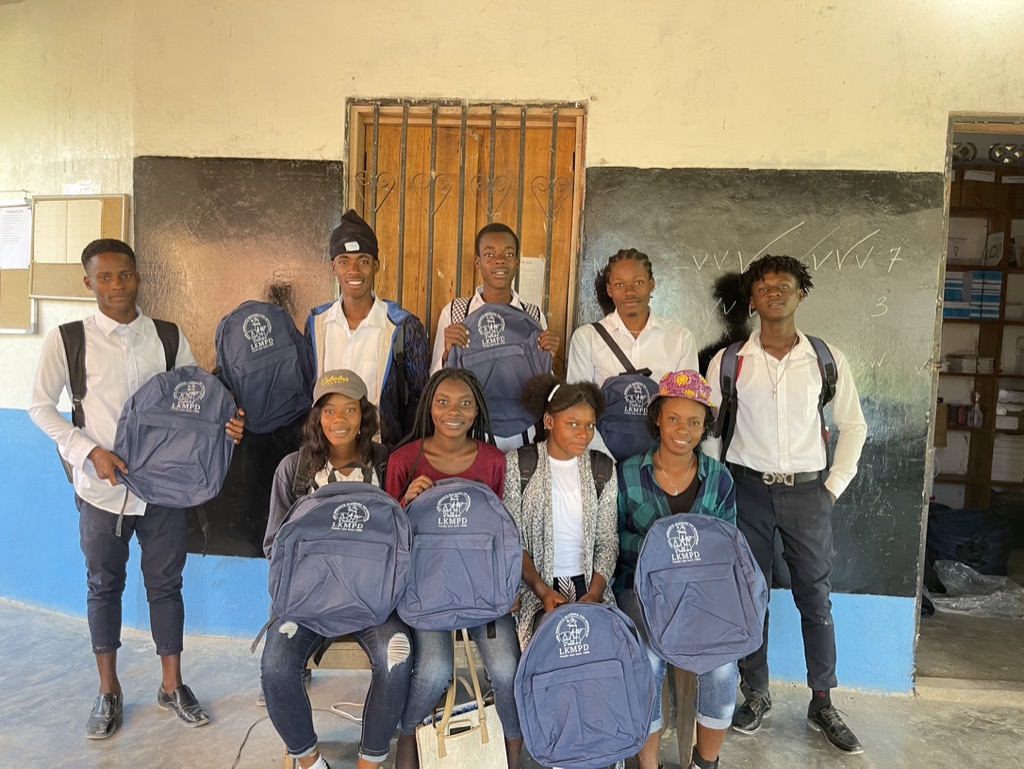 Back packs were ordered for all students and staff with the school’s LKMPD logo printed on the front. Given the situation in Haiti, getting all 380 back packs all the way to Lagonav continues to be a challenge, but we managed to get the first 200 sent over as extra cargo on two 5 seater planes. These were given to the high school students and staff. The result was a lot of proud appreciative smiling faces!